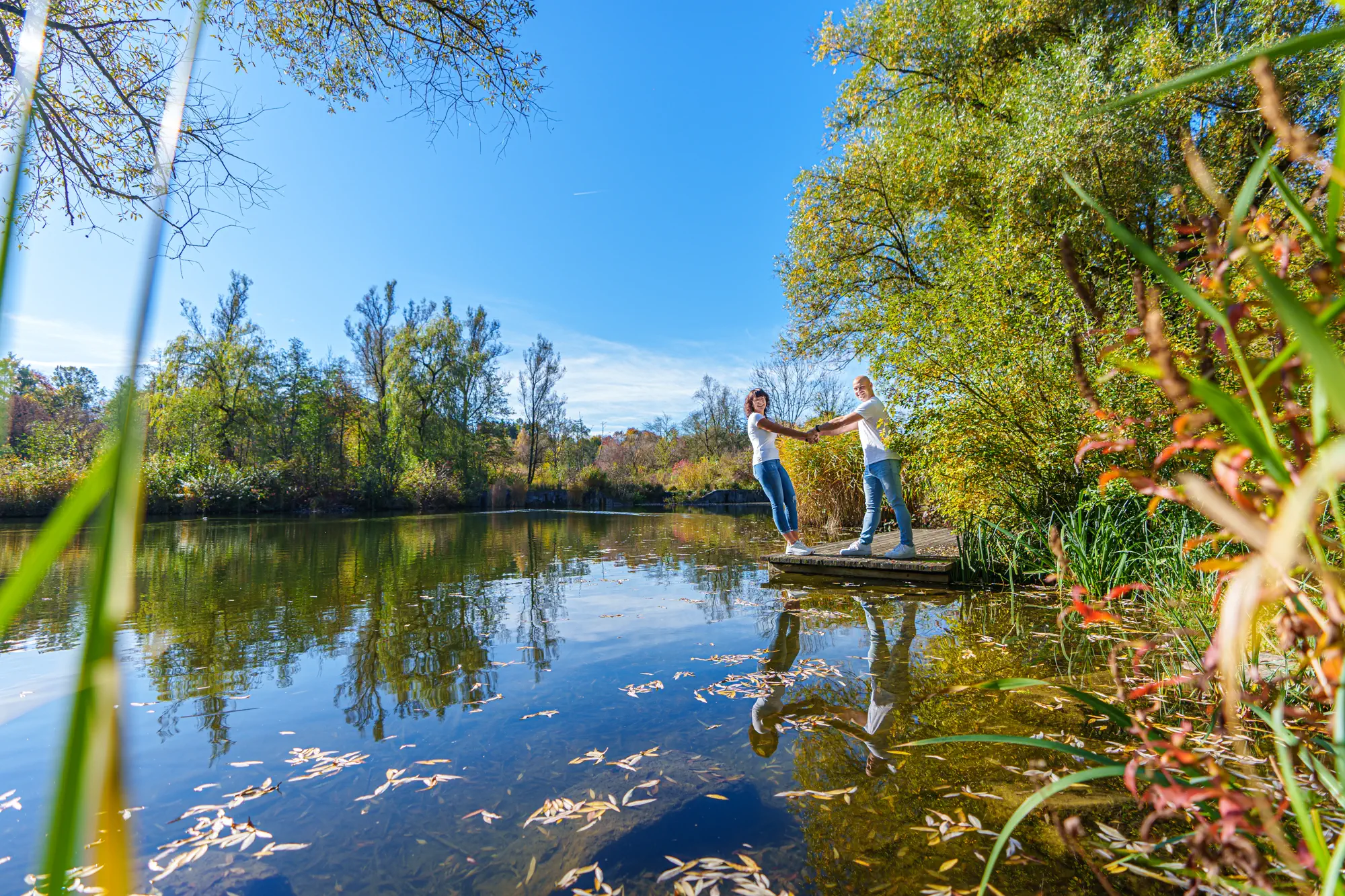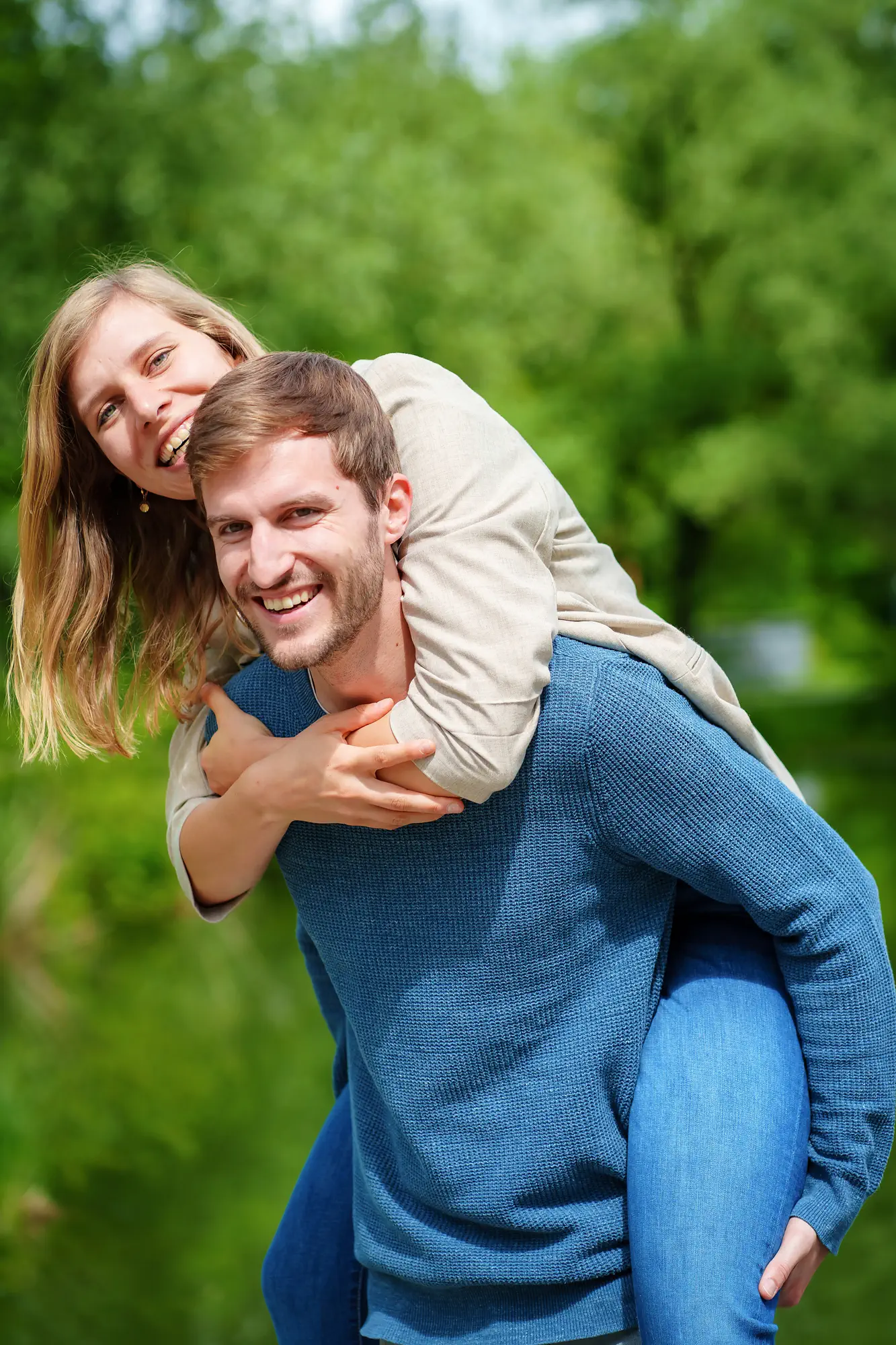 Fotografiert werden Paare in natürlicher Umgebung, draußen oder an einem Ort mit persönlicher Bedeutung. Licht, Abstand und Bewegung werden so eingesetzt, dass Nähe entstehen kann, ohne aufgesetzt zu wirken.